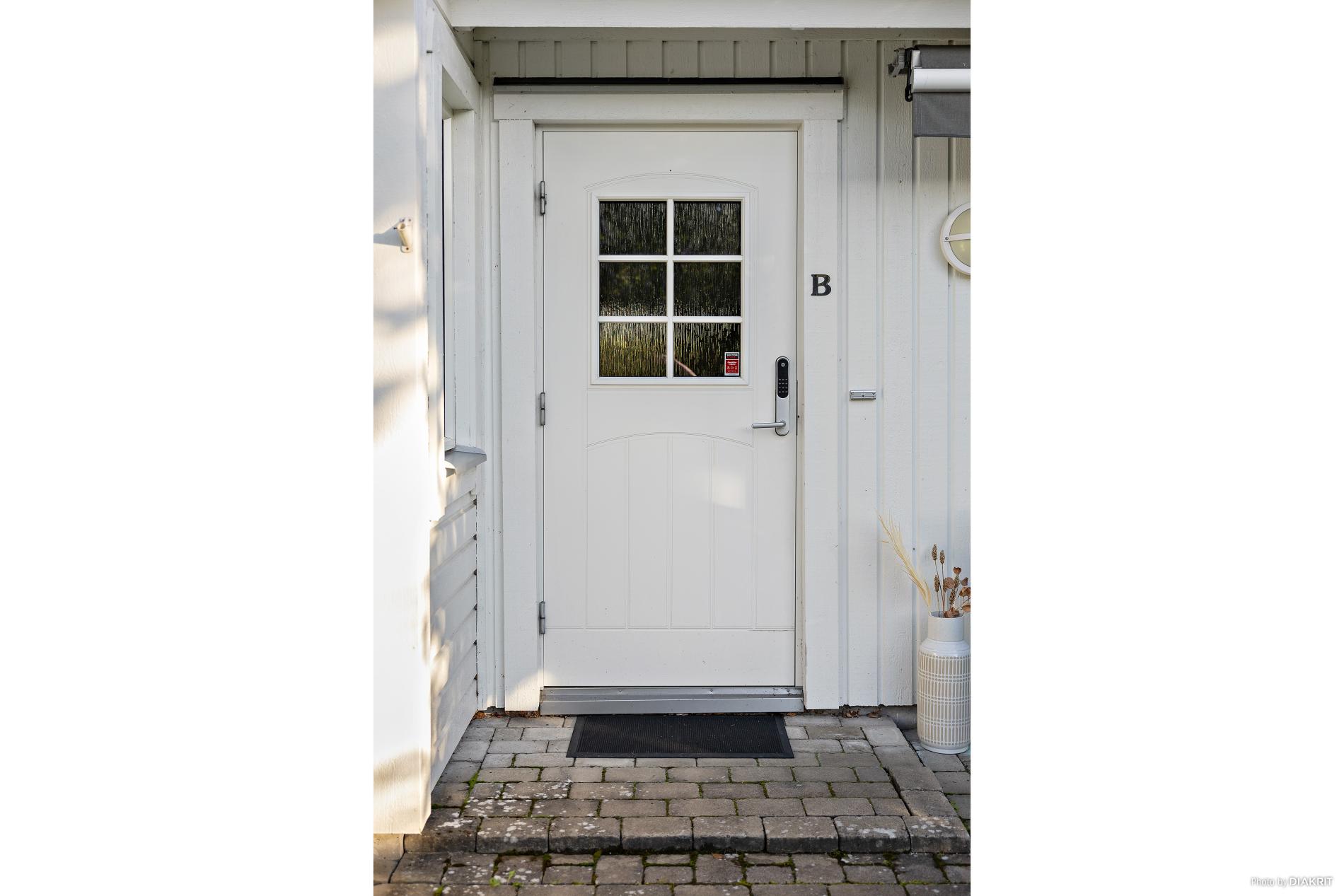 Till varje lägenhet hör en parkering och i området finns fyra gemensamma gästparkeringar. Vid denna bostad får man plats med två bilar på parkeringen.