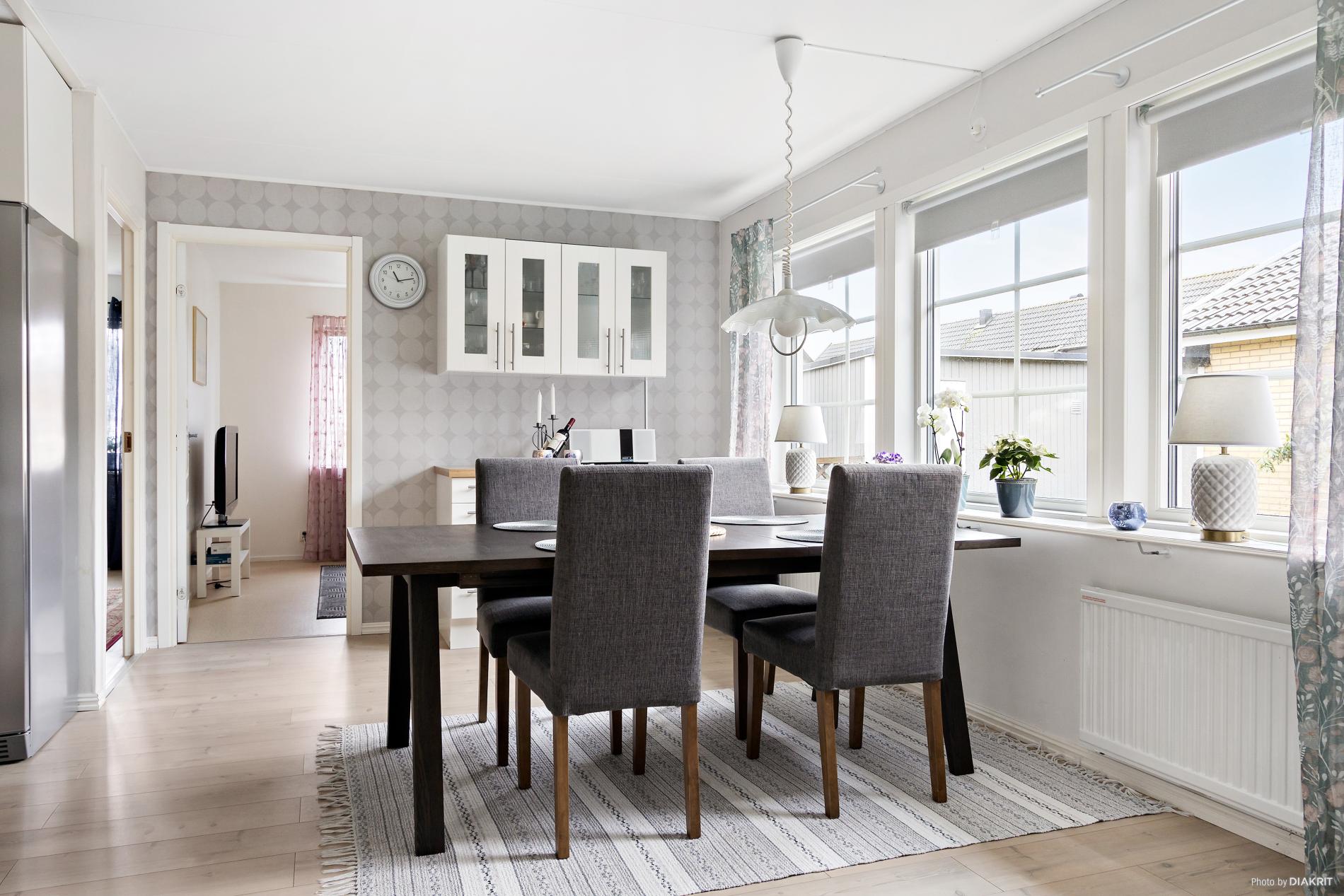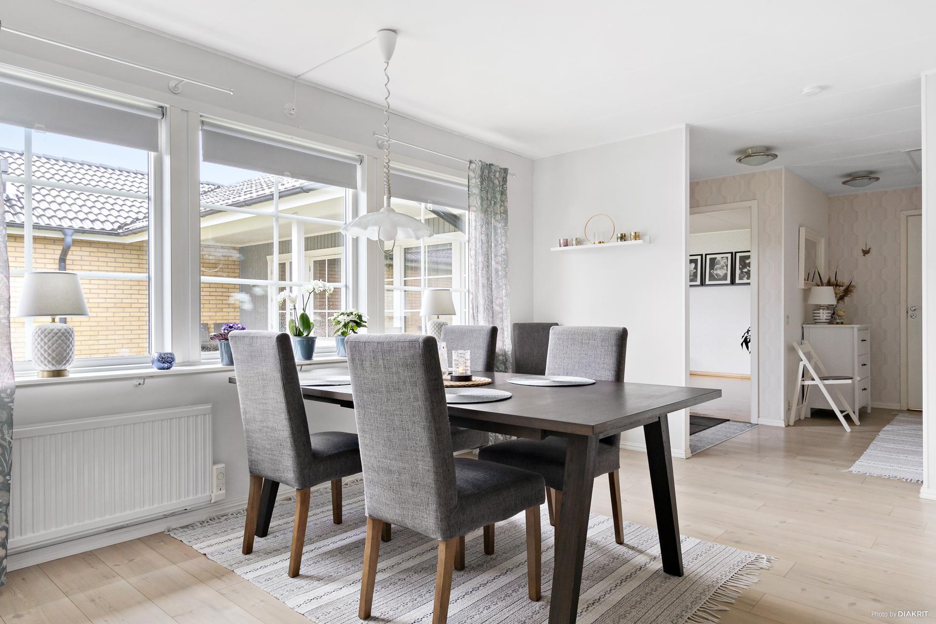 Välkommen till ett lättskött och inbjudande radhus där varje detalj bidrar till en högre livskvalitet! Detta är det perfekta hemmet för er som värdesätter ett bekvämt och lättskött boende och en egen mysig trädgård att koppla av i. Köket är utrustat med ljusa luckor med modern standard. Tre sovrum med gott om plats för hela familjen, gäster eller kanske ett hemmakontor. Alla rum är väldisponerade och lättmöblerade. Badrum samt gästtoalett och praktisk tvättstuga. Härligt vardagsrum med mycket ljusinsläpp som skapar en öppen och luftig känsla. Utanför väntar en mysig trädgård, här får du känslan av villa men med radhusets enkelhet. Bostaden har nyare yttertak och nyare fönster vilket borgar för ett bekvämt och enkelt boende under lång tid framöver.