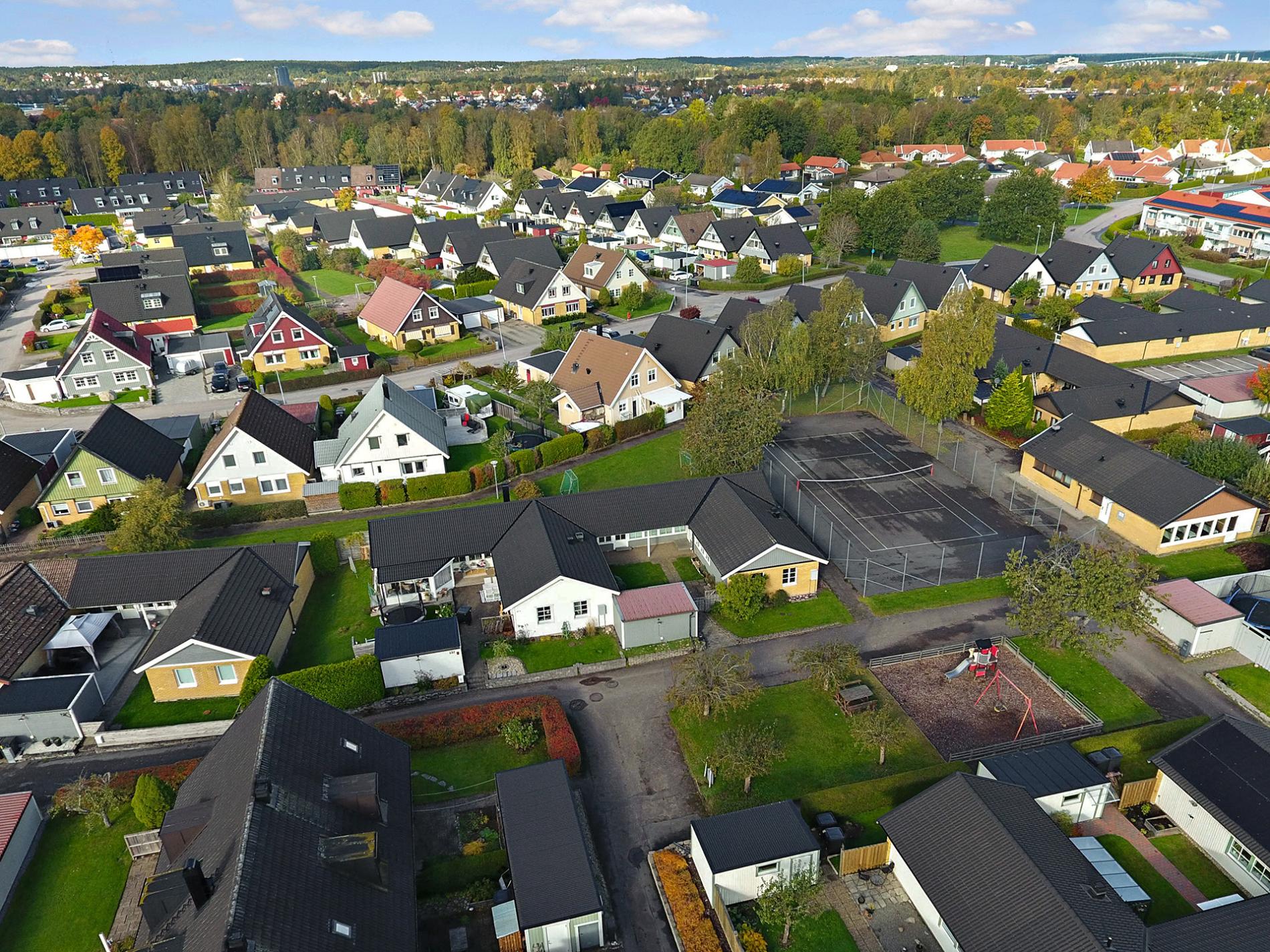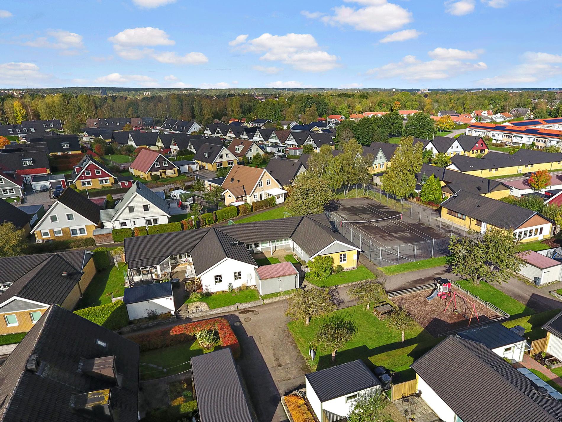 Malöga flygplats finns också att tillgå endast 10 minuter bort med bil för den som vill flyga till Stockholm. Flygplatsen erbjuder även andra destinationer och utbudet utvecklas löpande. I området finns det en förskola som heter Simsnäppan. I närområdet finner ni Fridaskolan (F-9), Stavreskolan (F-9) samt Lyrfågelskolan (F-9). Besök kommunens hemsida för mer information www.trollhattan.se