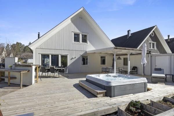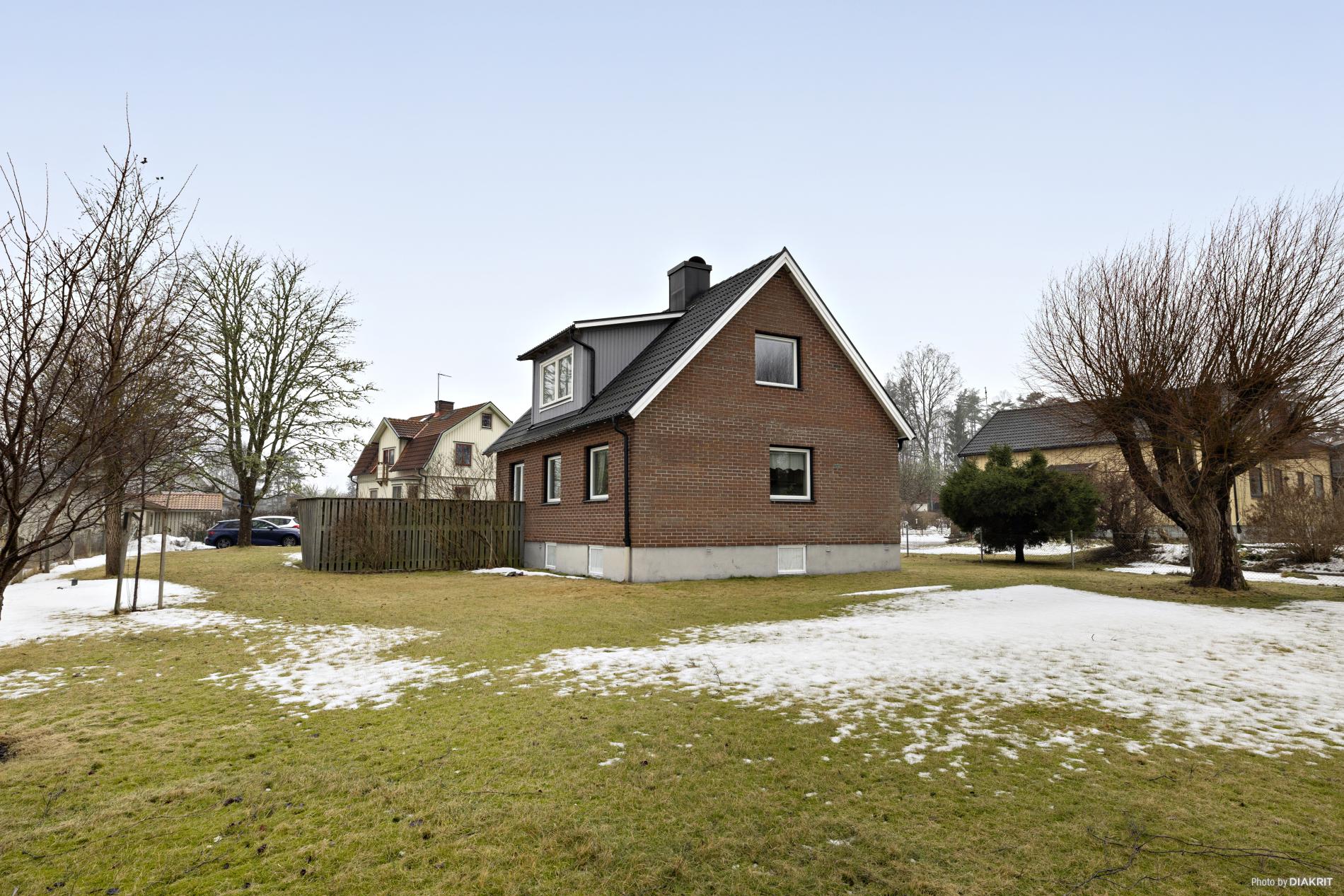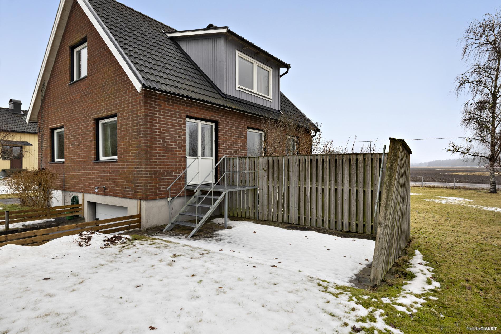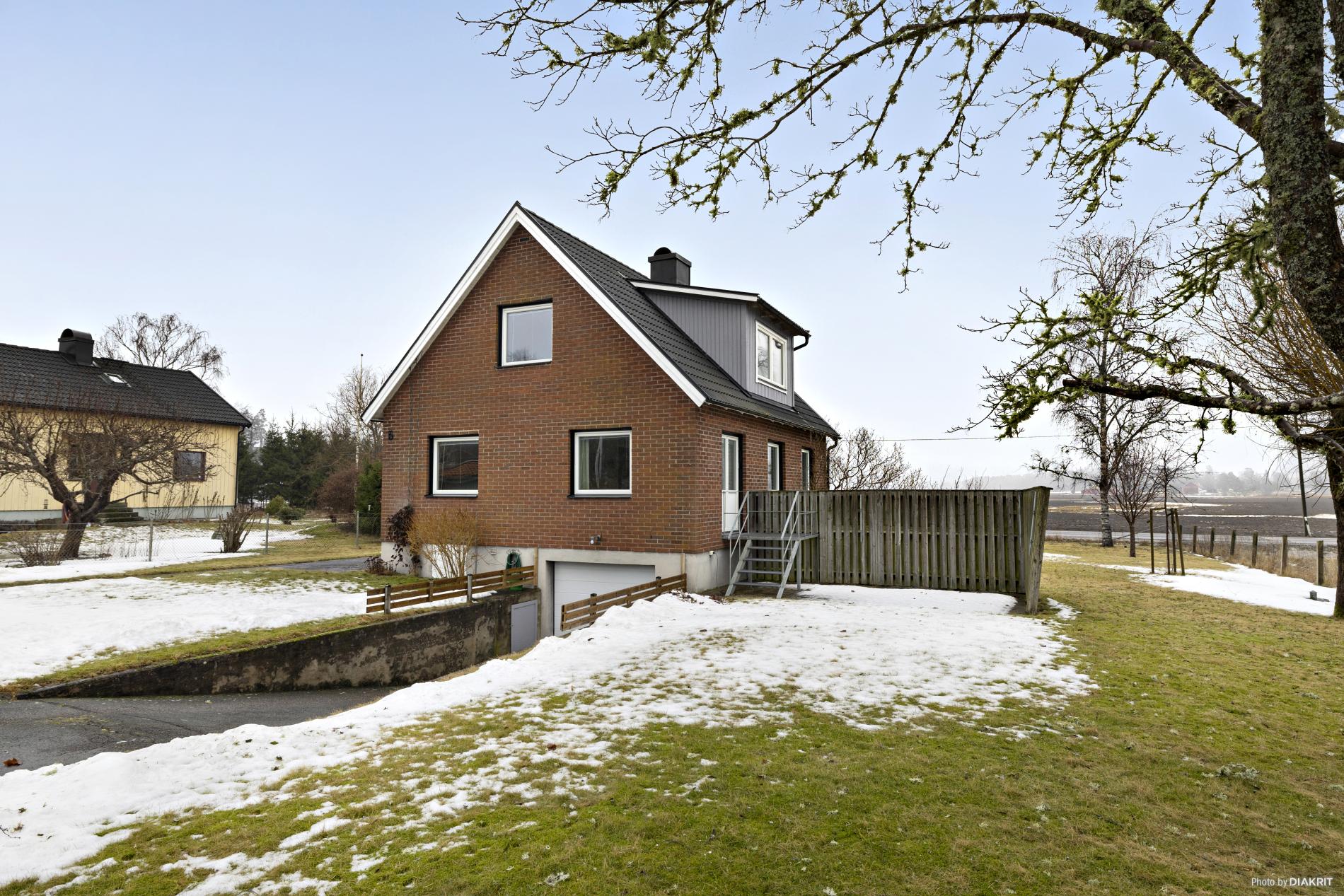 Här bor du med stor trädgårdstomt, parkering på uppfart och i källargarage med fjärrstyrd port samt ett fristående trädgårdsförråd. I anslutning till entrén och från vardagsrummet finns härlig stenlagd uteplats och på tomten har du sol hela dagen - varför inte bygga en trevlig altan?