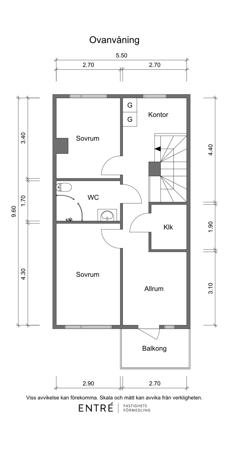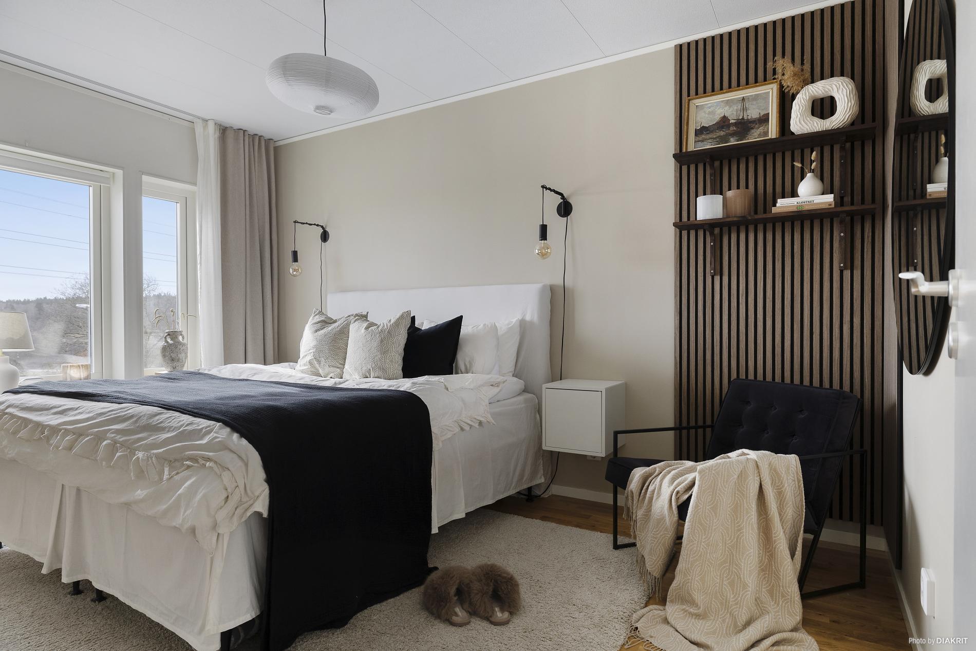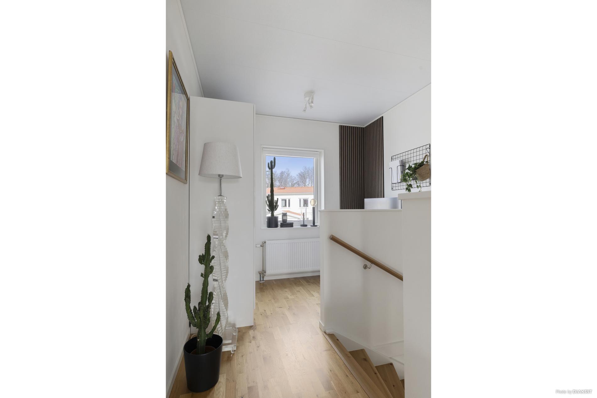 En trappa upp finner du bostadens mer privata del med två rymliga sovrum samt möjlighet att med enkla medel skapa ett tredje sovrum. Här finns även ytterligare ett badrum samt en praktisk hörna som lämpar sig utmärkt som hemmakontor eller studieplats.