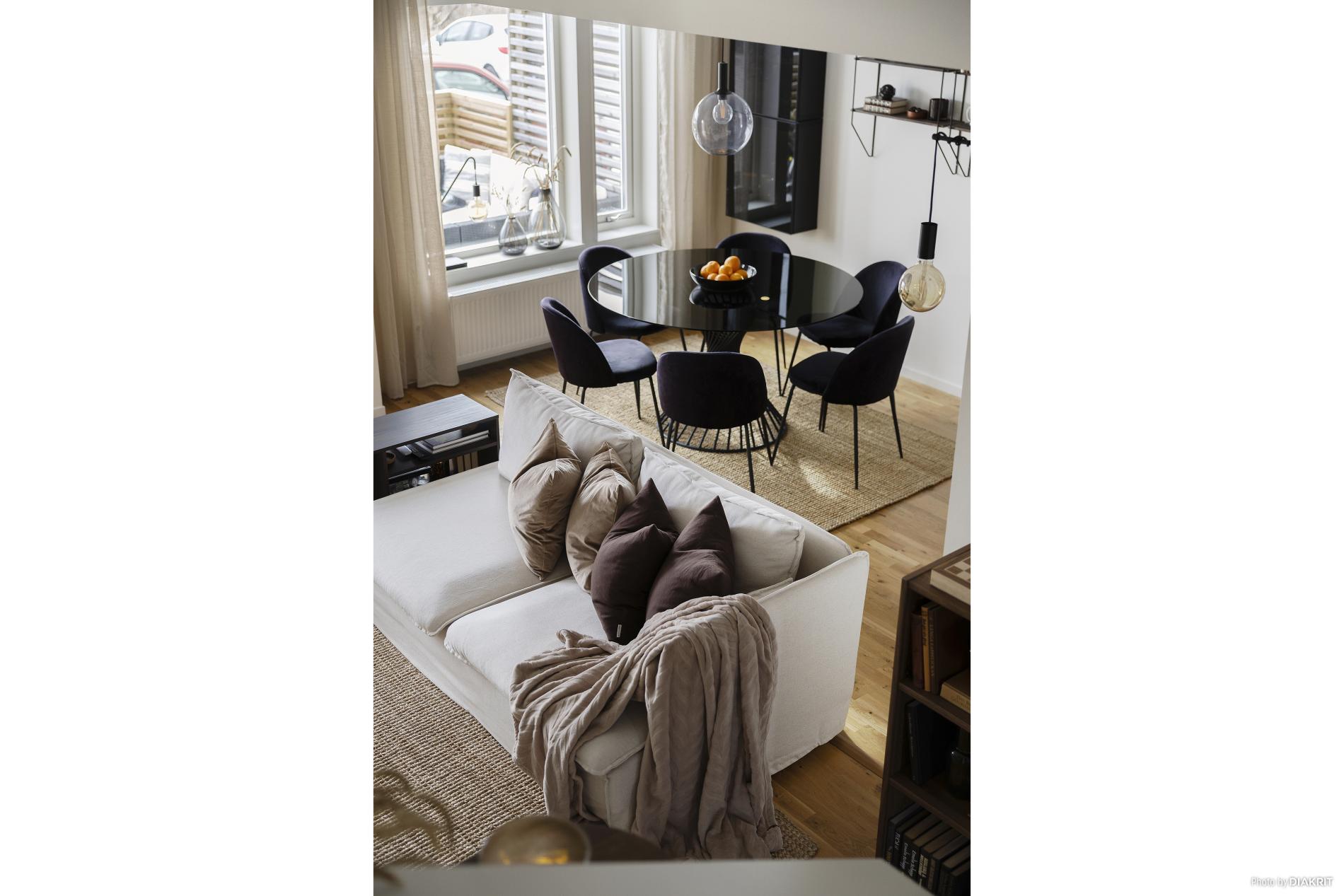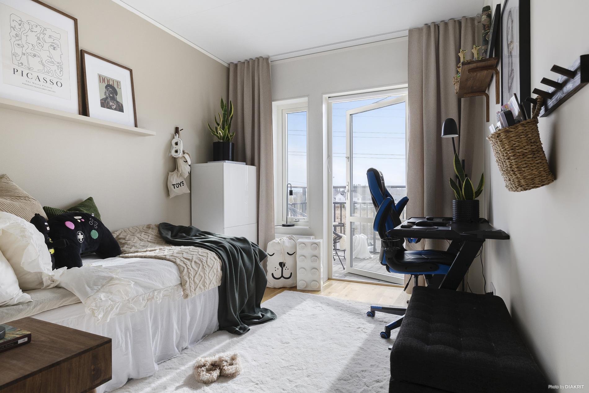 Bostaden fördelar sig idag på 3 rum och kök, med goda möjligheter att enkelt skapa ytterligare ett sovrum för den som har behov av det.