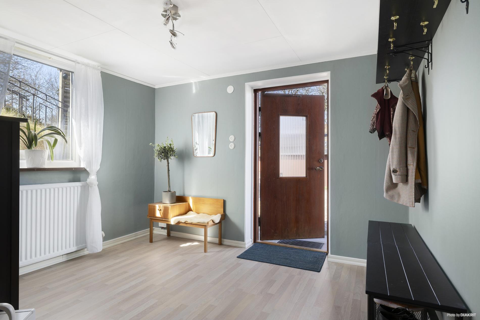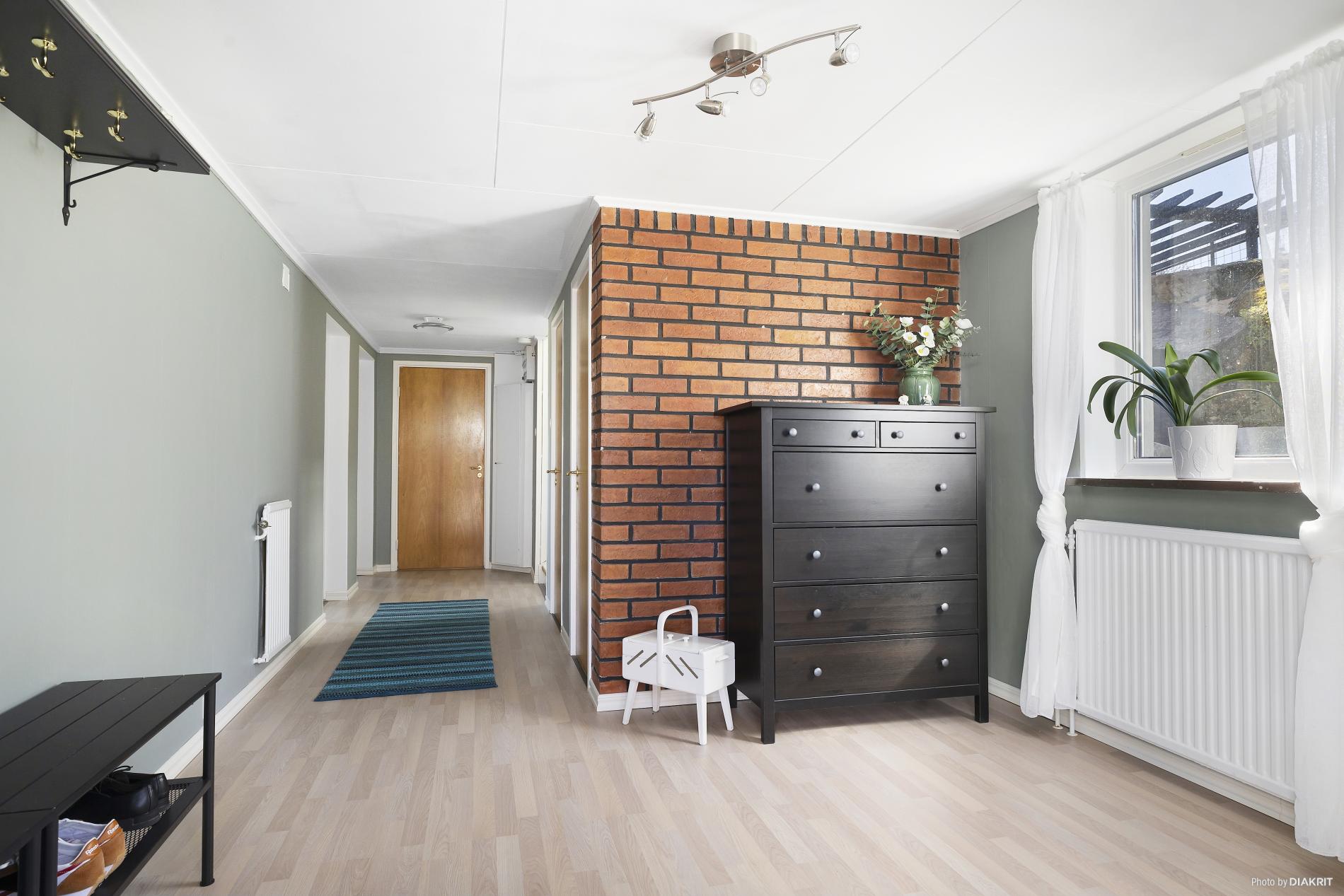 Välkommen in i hallen! Här är det laminatgolv och målade väggar.