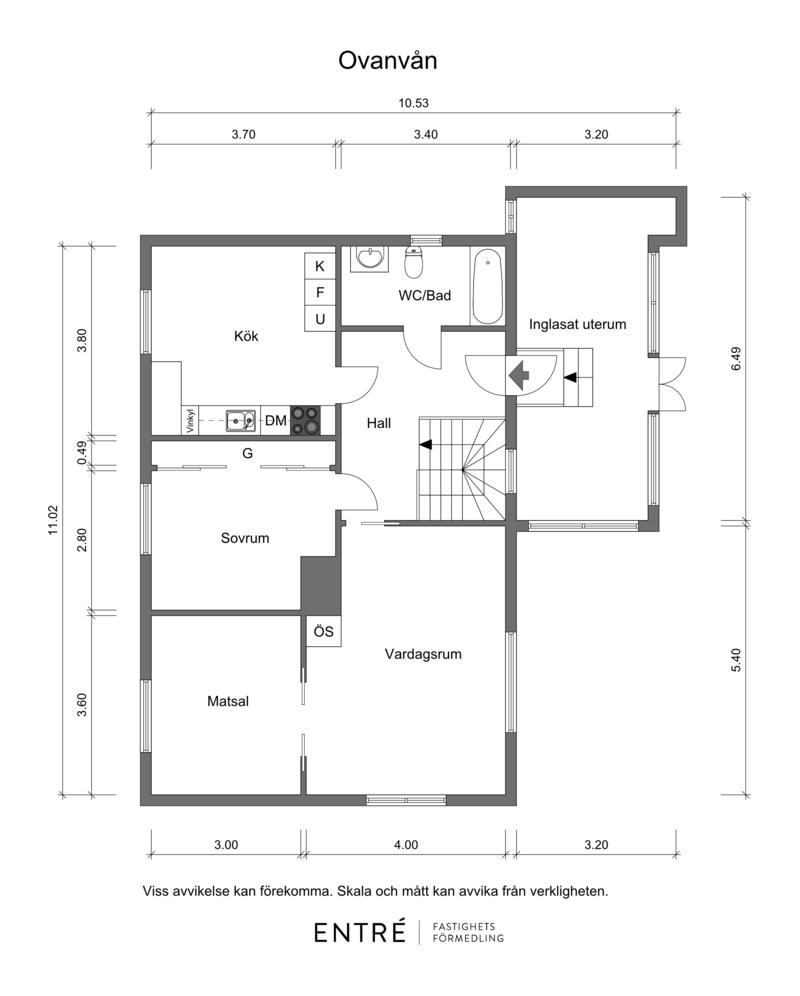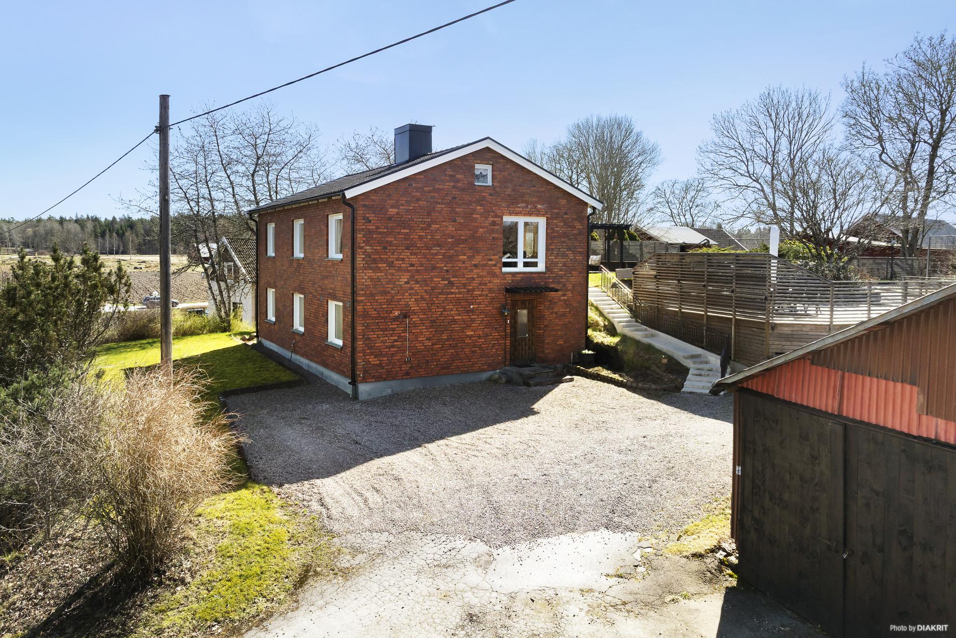 Själva bostadshuset är ett gediget och lättskött tegelhus i suterräng, där varje kvadratmeter är smart disponerad över två plan. Nedre plan välkomnar med en praktisk entréhall, två rofyllda sovrum, en rymlig klädkammare, gästtoalett och den funktionella tvättstugan med pannrum och förvaring innanför. En trappa upp öppnar hemmet upp sig ytterligare med ett fräscht och hemtrevligt kök, ett stilrent renoverat badrum och en luftig matsal i vinkel till ett vardagsrum. Vardagsrum kan med enkelhet omvandlas till ytterligare ett sovrum om familjen växer. I matsalen sprider den trivsamma kaminen en härlig värme och atmosfär under kyliga vinterkvällar. På övre plan finns även ett generöst sovrum med bra förvaring samt hall med utgång till den inglasade altanen på husets baksida.