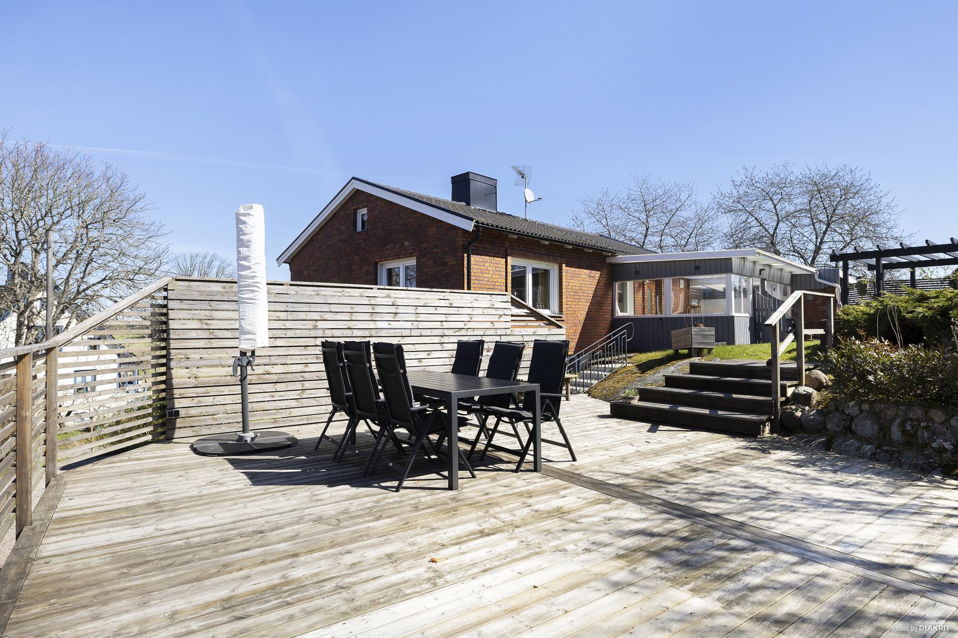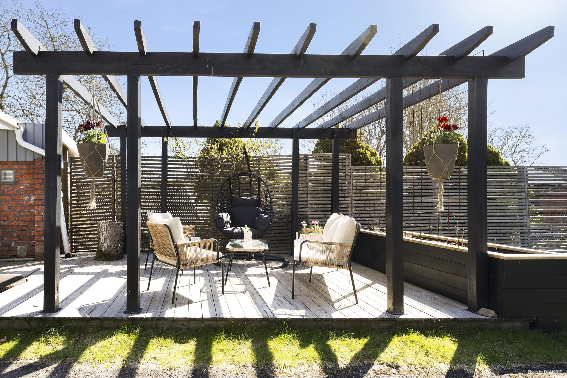 På tomten finns en inglasad altan med utgång från hallen i övre plan, trevlig altan med pergola samt en stor träaltan i härligt sydvästläge.