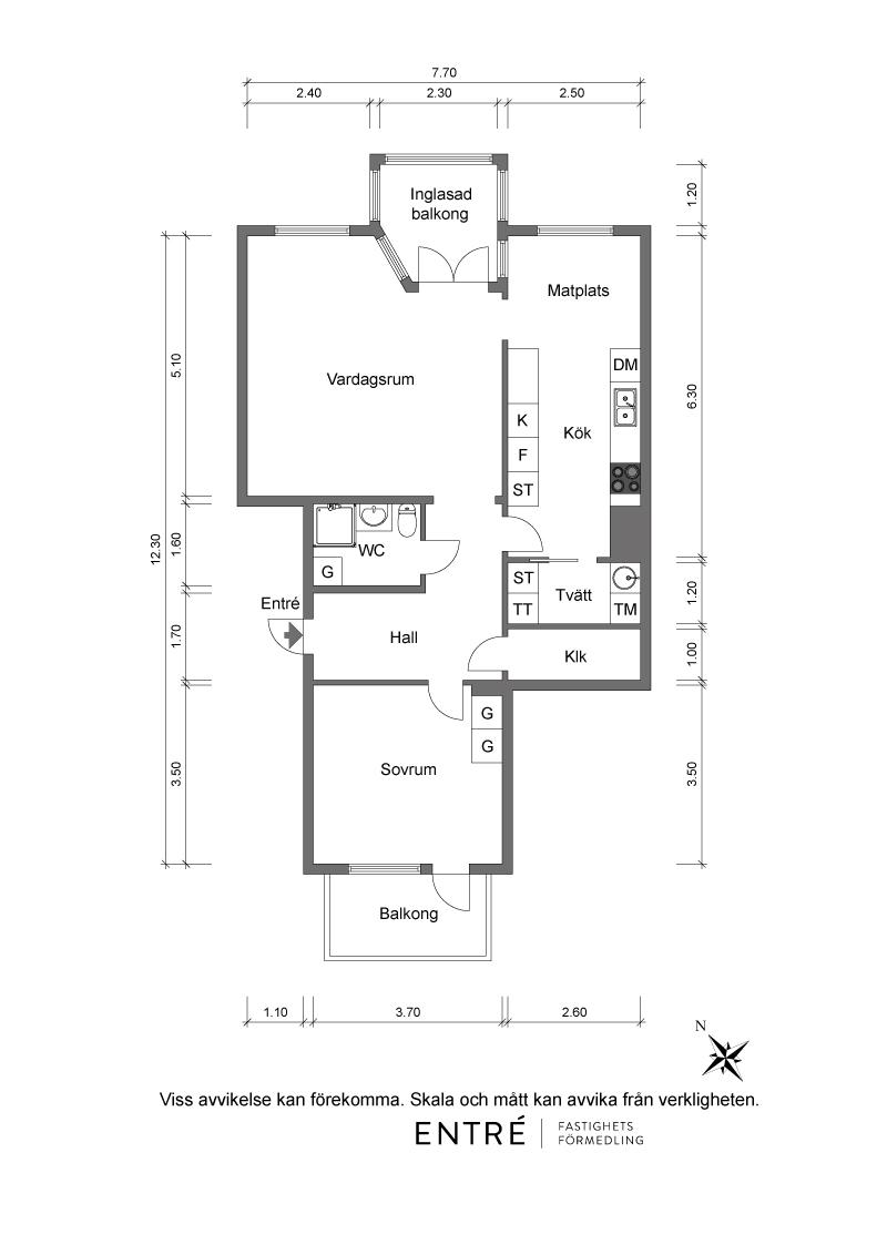 Den väldisponerade planlösningen inrymmer hall, klädkammare, luftigt vardagsrum, välskött gediget ek-kök med matplats, en praktisk tvättstuga, ett rofyllt sovrum och ett badrum med dusch. Här kan du flytta med dig kaffekoppen och njuta av två olika väderstreck på dina två balkonger – en härligt inglasad från vardagsrummet och en i soligt söderläge från sovrummet.