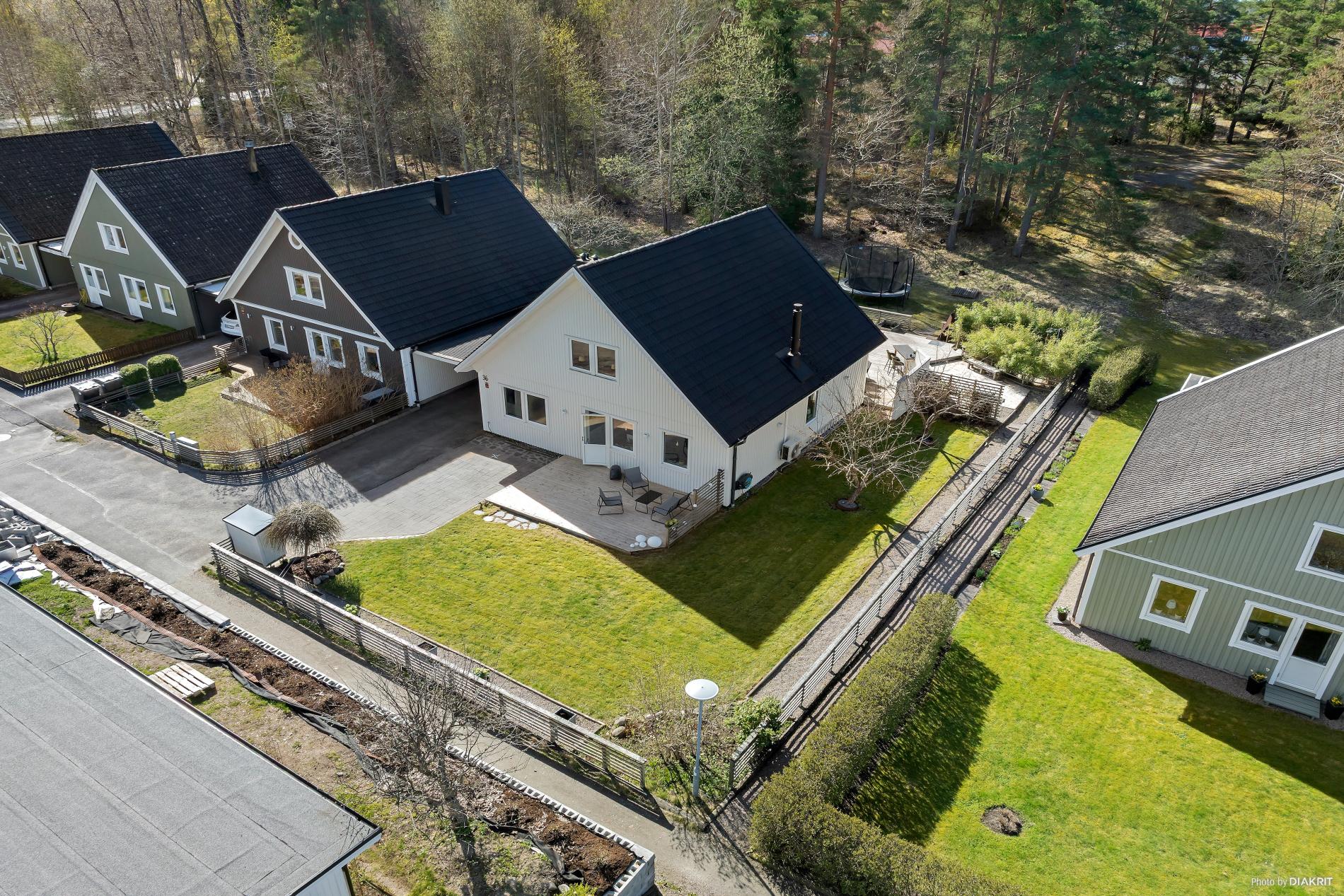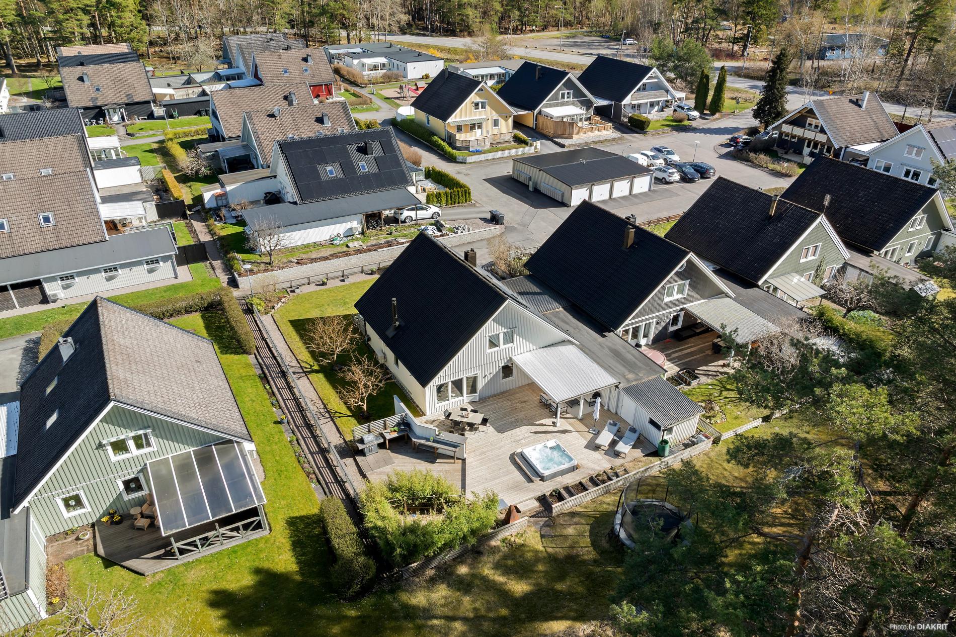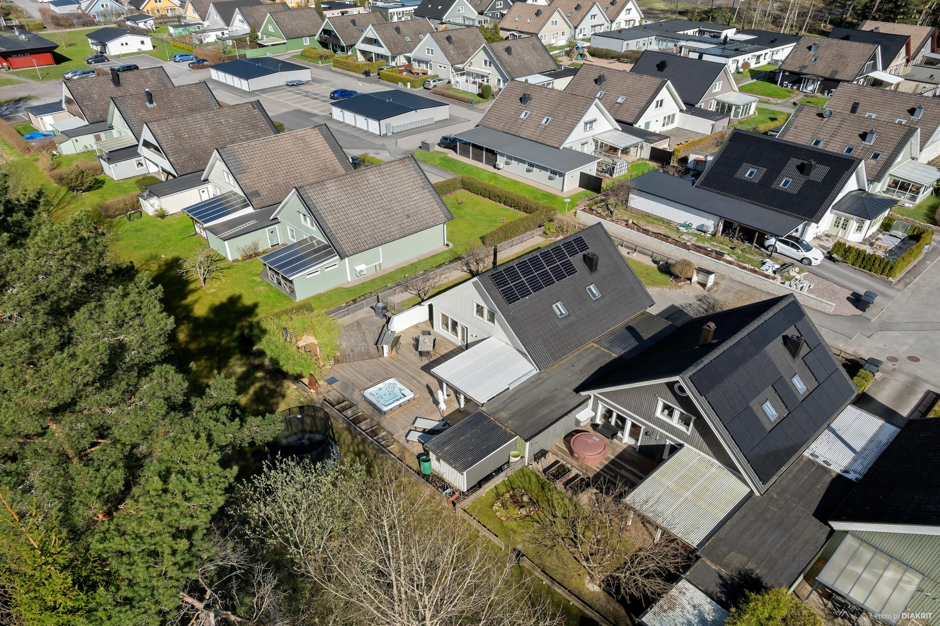 Interiört möts du av ljusa, luftiga ytor och en planlösning som är lika praktisk som den är trivsam. Med möjligheten till 3–5 sovrum kan huset växa i takt med dina behov – perfekt för barnfamiljen, dig som behöver ett rymligt hemmakontor eller vill ha ett eget gästrum. Här bor du med framtiden i åtanke. Taket är prydt med solceller som sänker dina driftskostnader och gör boendet både plånboksvänligt och klimatsmart. Biluppställningsplatsen är heller inget problem, här finns ett garage samt ytterligare tre parkeringsplatser, vilket gör vardagslogistiken till en dröm även när gästerna kommer på besök.