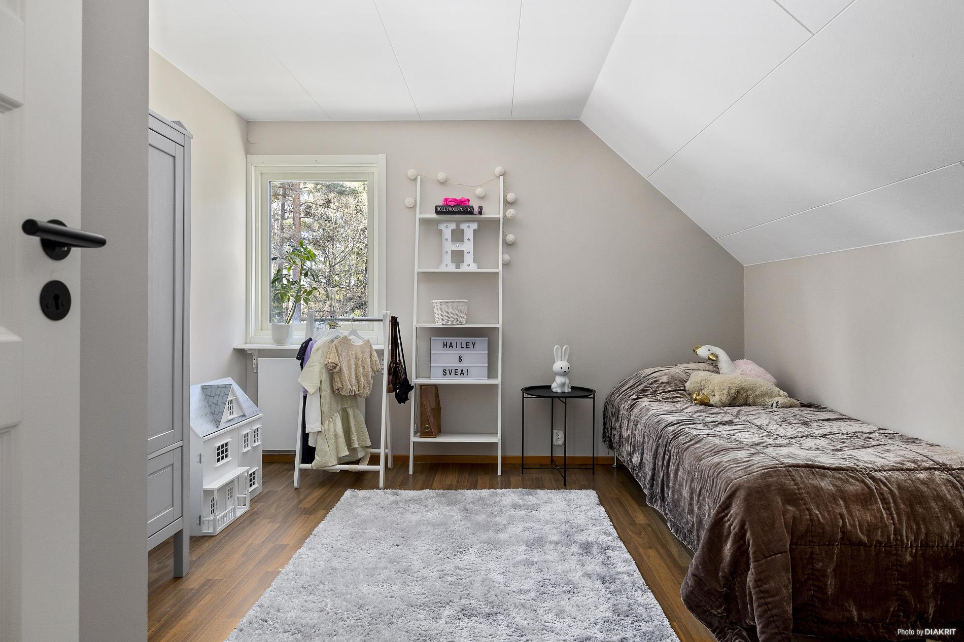 Baksidan med sol hela dagen ligger mot mindre skogsparti med härliga möjligheter för lek.
