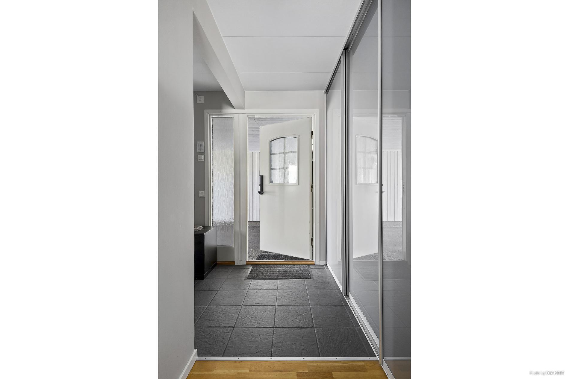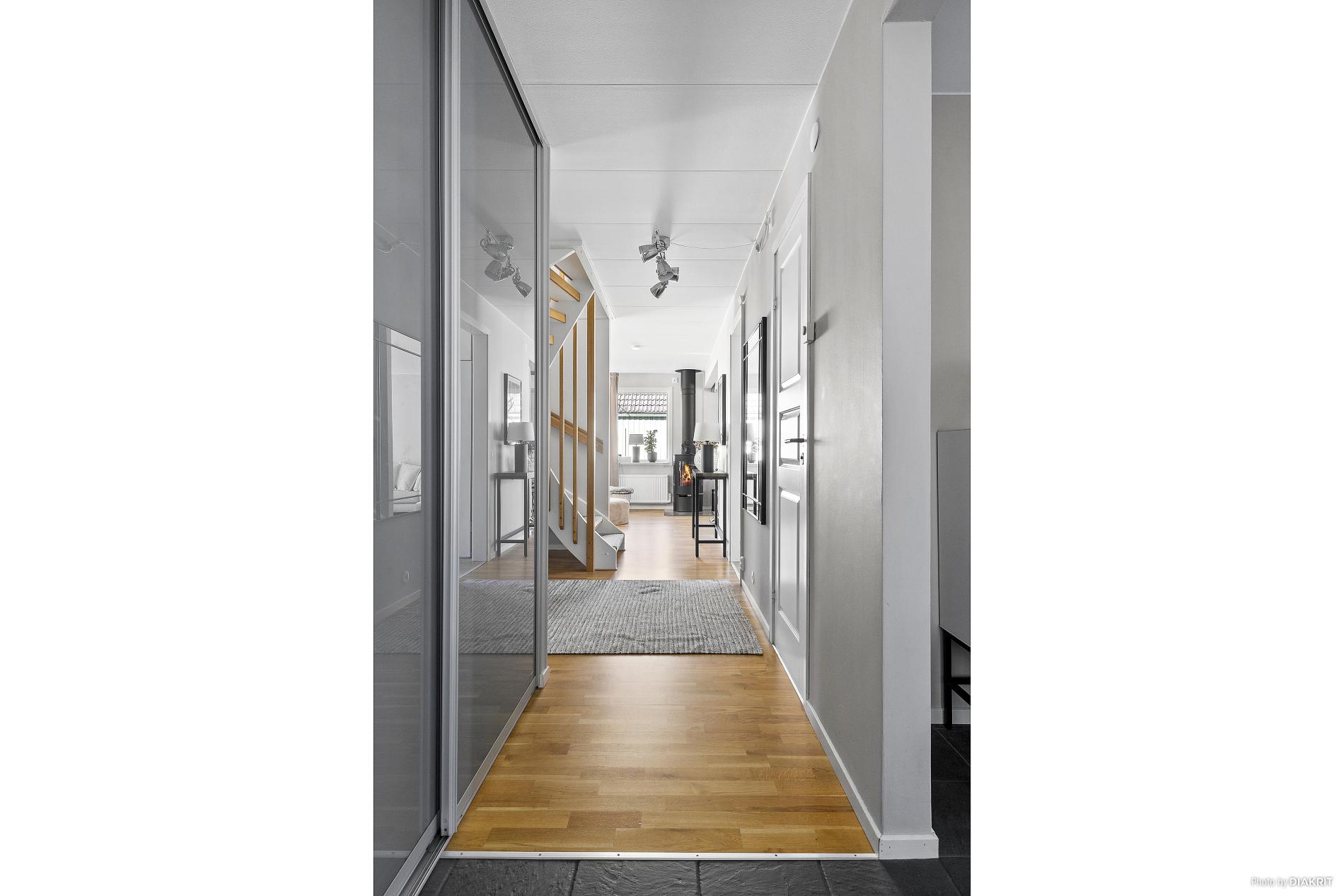 Välkomna in i hallen på Ljungvägen 36. Här möts du av klinkergolv med golvvärme och målade väggar samt med stor skjutdörrsgarderob för avhängning.