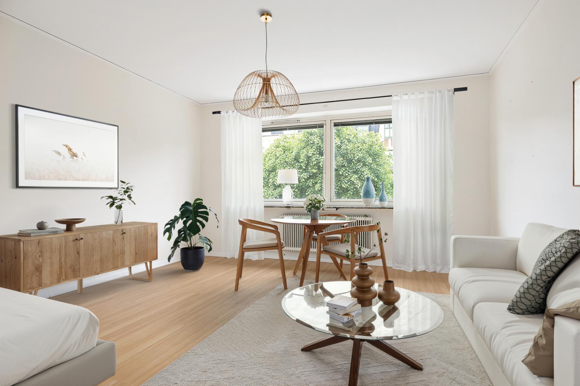 Här finner ni en ljus och trivsam bostadsrätt med praktisk planlösning. Bostadsytan disponeras över möblerbar hall med förvaring, trevligt kök med matplats, ljust vardagsrum med plats för säng och soffa samt ett badrum med dusch.
